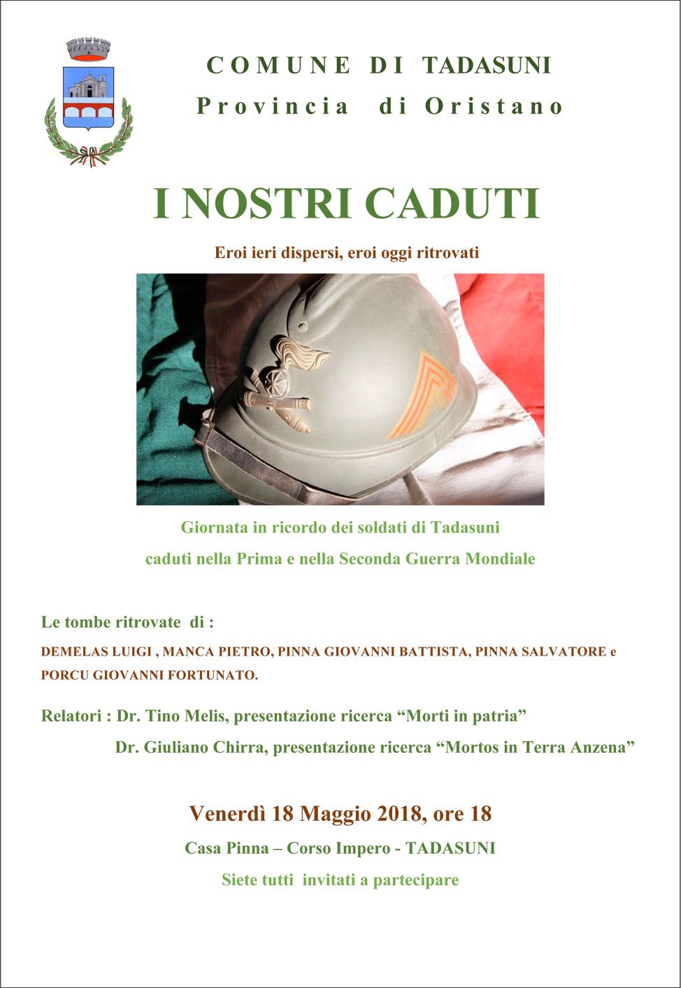 Giornata in ricordo dei soldati di Tadasuni caduti nella Prima e Seconda guerra mondiale di cui sono state ritrovate le tombe.